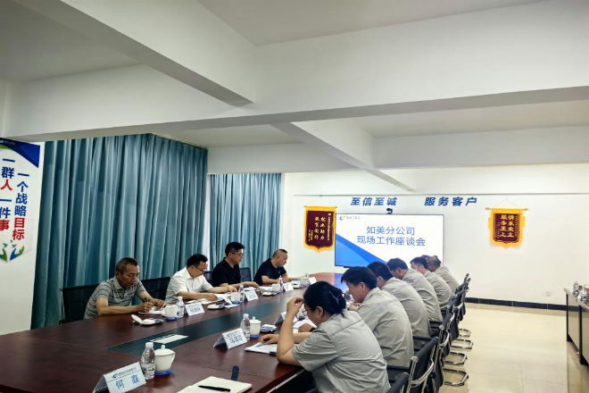 7月10日至12日,公司总裁金克斌、执行总裁罗成勇、办公室主任候建林、华源公司总经理杨林一行到如美分公司检查指导工作。11日上午,金克斌总裁一行到分公司各部门看望并亲切慰问了在岗员工。随后,金总裁一行召开了现场工作座谈会,会议由如美分公司副总经理石炜主持,分公司各部门负责人、管理人员参加会议。会上,分公司副总经理石炜对...